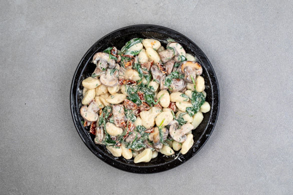 Heute wird ein italienischer Klassiker ordentlich aufgepeppt: Die Gnocchi werden mit einer köstlich-cremigen Pilzsauce im Ofen mit bestem Hartkäse goldgelb überbacken, getrocknete Tomaten sorgen für fruchtige Raffinesse. Dazu gibt es einen frischen Spinatsalat mit gerösteten Kürbiskernen.