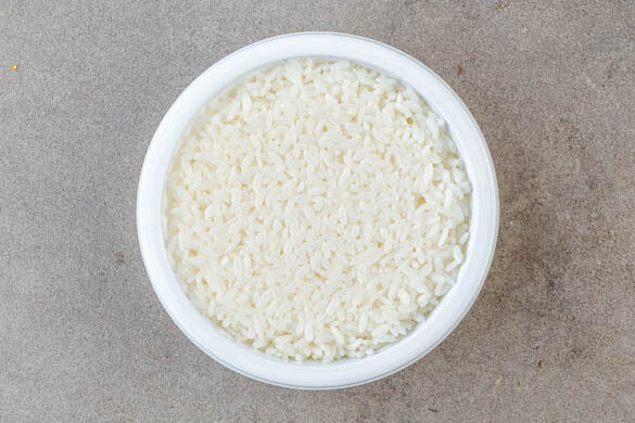 Den Deckel des Reis-Bechers bis zur gepunkteten Linie öffnen und den Reis in der Mikrowelle 2Min. erwärmen. Tipp: Wer keine Mikrowelle hat, kann den geschlossenen Reis-Becher in einem Topf mit kochendem Wasser ca. 10Min. erhitzen.