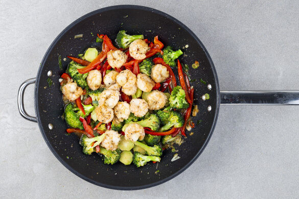 Du willst Asien pur? Dann ist dieses Gericht genau das Richtige für dich! Der frische Brokkoli und die leuchtend rote Paprika sind Balsam fürs Auge, ganz klassisch gibt es dazu leckeren Klebreis. Teriyaki- und Sojasauce sorgen ebenfalls für Asien-Feeling, und wenn du es scharf magst, darfst du dich mit frischer Peperoni so richtig austoben. Und die Stars? Aber ja: Es gibt saftige Garnelen, nur für dich und deine Lieben!
