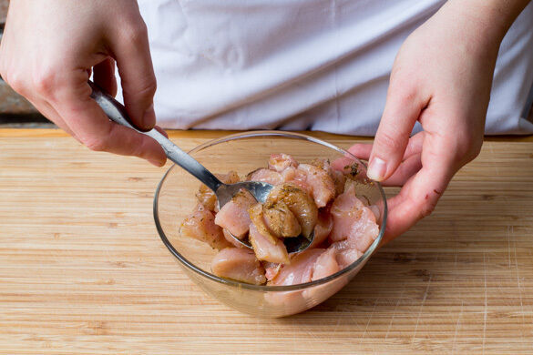 Den Backofen auf 220°C (200°C Umluft) vorheizen. Das Fleisch trocken tupfen und mit 1EL Olivenöl und der ½ der Gewürzmischung oder mehr vermengen.
