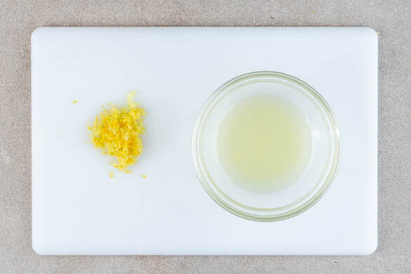 Die Zitronenschale abreiben, dann die Zitrone halbieren und auspressen.