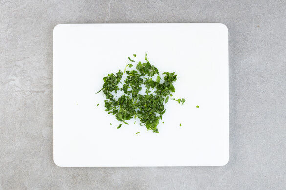 Die Petersilie samt Stängeln fein hacken.