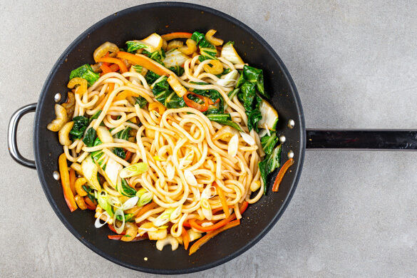Pikante Udon-Nudeln mit Ei und knackig-frischem Gemüse