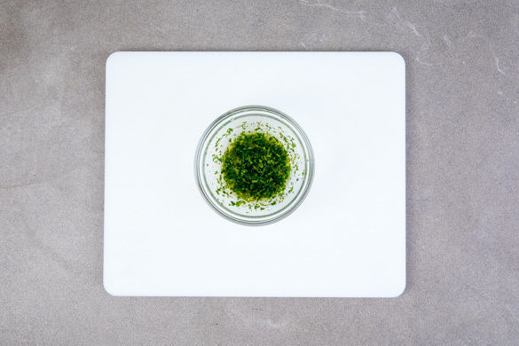 Die Zitronenschale abreiben, dann die Zitrone halbieren und auspressen. Die Minzeblätter abzupfen und fein schneiden. Mit 1EL Olivenöl, 1EL Zitronensaft, 1TL Zitronenschale sowie Salz und Pfeffer zu einem Dressing verrühren.