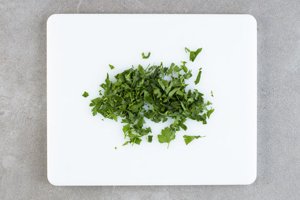 Die Petersilienblätter abzupfen und grob hacken. Das Fleisch in 1–2cm dicke Tranchen schneiden. Den Blumenkohl und die Bohnen auf Teller verteilen. Das Fleisch darauf anrichten und mit der Sauce und der Petersilie garniert servieren.