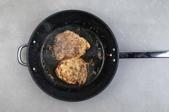 Das Fleisch aus der Würzsauce nehmen und in einer großen Pfanne bei mittlerer Hitze auf beiden Seiten 2–3Min. anbraten, sodass es in der Mitte noch leicht rosa ist. Die restliche Würzsauce auf dem Fleisch verteilen und das Fleisch ggf. noch 1–2Min. länger braten.