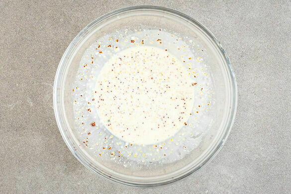 1EL Senf mit 2EL Mayonnaise, 2EL Essig, 2TL Wasser und 1TL Honig zu einem Dressing verrühren. Mit Salz und Pfeffer abschmecken.