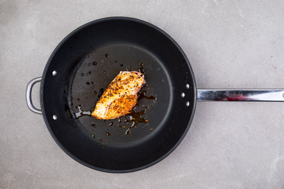 Das Fleisch mit etwas Küchenkrepp trocken tupfen, mit der Gewürzmischung einreiben und mit Salz und Pfeffer würzen. In einer mittelgroßen Pfanne mit 1–2EL Olivenöl bei starker Hitze 3–4Min. rundum scharf anbraten, dann in eine Auflaufform geben und im Ofen 8–10Min. garen, bis das Fleisch in der Mitte durch ist. Die Pfanne auswischen und beiseitestellen.