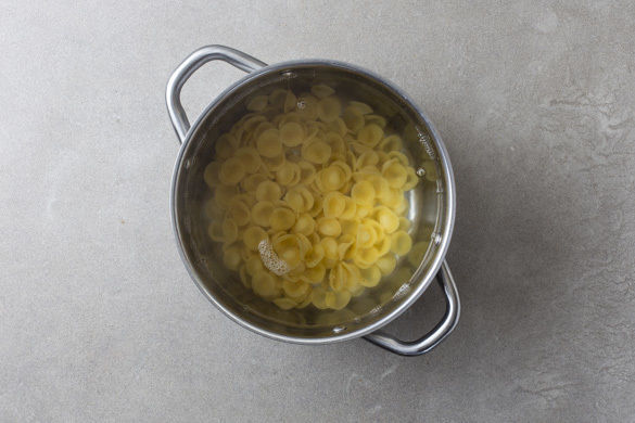 Die Pasta in das kochende Wasser geben und in 9–11Min. bissfest kochen. Zwischendurch immer mal umrühren, damit die Pasta nicht zusammenklebt. In ein Sieb abgießen.