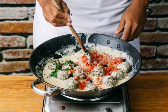 Unser Koch Matthias hat heute ein Rezept für dich, das Groß und Klein begeistert! Und vielleicht hast du ja angehende Köche und Köchinnen zur Hand, die beim Formen der kleinen Fleischbällchen helfen wollen? Diese werden dann in einer cremigen Sauce gegart, die dank frischer Tomatenwürfel und Kräuter ein tolles Aroma hat. Dazu gibt es duftenden Basmatireis.