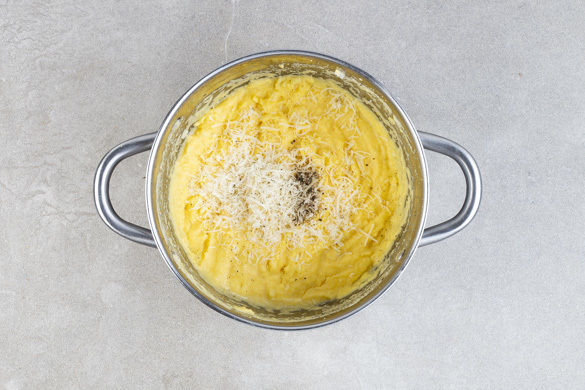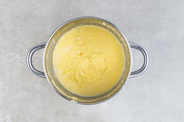 Die Gewürzsahne aufkochen lassen. Den Herd ausschalten, die Polenta mit einem Schneebesen in die Gewürzsahne einrühren und abgedeckt 5–7 Min. gar ziehen lassen.