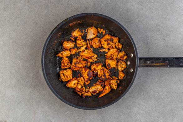 Den Fisch kalt abspülen, trocken tupfen und evtl. vorhandene Gräten und Schuppen entfernen. In einer mittleren Pfanne ½EL Pflanzenöl stark erhitzen. Den Fisch ins heiße Öl geben, mit einem Pfannenwender leicht zusammenpressen und ohne Rühren ca. 3Min. braten. Wenden, die restliche Gewürzmischung und 1 Prise Salz zugeben und erneut zusammendrücken. Zerkleinern und 2–3Min. weiterbraten.