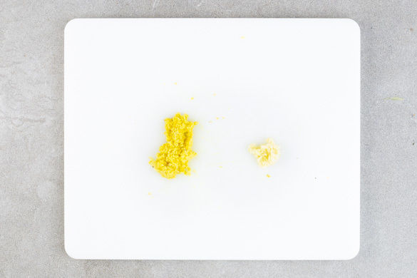 Den Ingwer und den Knoblauch schälen und fein reiben.