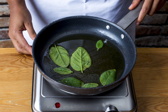 In einer großen Pfanne 2EL Olivenöl bei mittlerer Hitze erwärmen. Den Kürbis mit 5EL Wasser hineingeben, mit Salz und Pfeffer würzen und abgedeckt 7–10Min. garen. Anschließend aus der Pfanne nehmen und abgedeckt beiseitestellen.