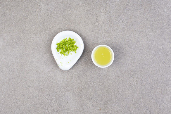 Die Limettenschale abreiben, dann die Limetten halbieren und auspressen.