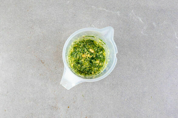 Die Zitronenschale fein abreiben, dann die Zitrone halbieren und auspressen. Den Käse fein reiben. Die Petersilie grob hacken. Die Nüsse mit 1–2TL Zitronenschale, der ½ des Käses, der Petersilie und je 2EL Zitronensaft, Olivenöl und Wasser grob pürieren. Ggf. etwas mehr Wasser zugeben und die Gremolata mit Salz, Pfeffer und Zitronensaft abschmecken.