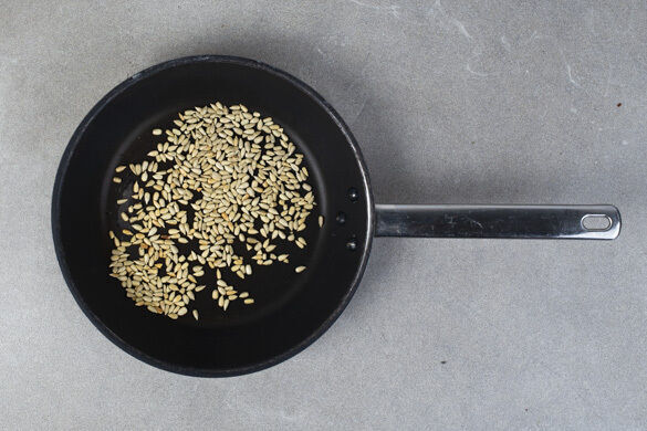 Die Sonnenblumenkerne in einer mittelgroßen Pfanne ohne Zugabe von Fett bei mittlerer Hitze in 1–2Min. goldbraun anrösten. Vorsicht, sie können schnell zu dunkel werden. Mit der Za’atar-Gewürzmischung und 1 Prise Salz vermengen, dann zum Abkühlen aus der Pfanne nehmen und beiseitestellen.