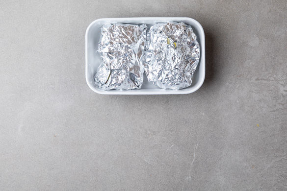 Die Alufolienstücke dicht verschließen und die Päckchen in einer Auflaufform 10–12Min. im Ofen garen. Dann die Päckchen vorsichtig öffnen und noch 5–8Min. offen backen. Tipp: Je nach Dicke der Lachsstücke kann die Garzeit variieren.
