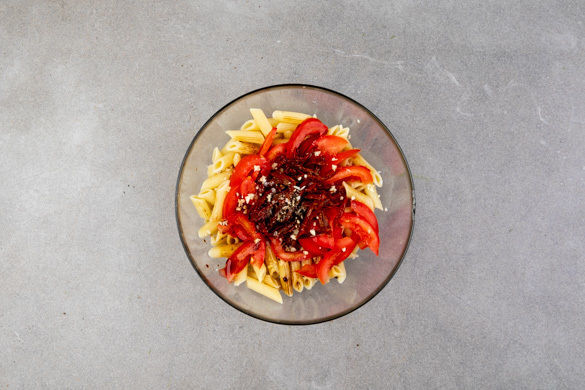 ¡Buenos días! Hier kommt ein temperamentvoller Salat der Königsklasse! Getrocknete Tomaten, Rucola und italienischer Käse versprühen sonniges, mediterranes Flair und der mild-aromatische Geschmack von luftgetrocknetem Serranoschinken einen Hauch spanischer Eleganz. Dieser Pastasalat ist übrigens ein echtes Allroundtalent – er schmeckt als leichtes Abendessen genauso gut wie als sättigender Lunch.