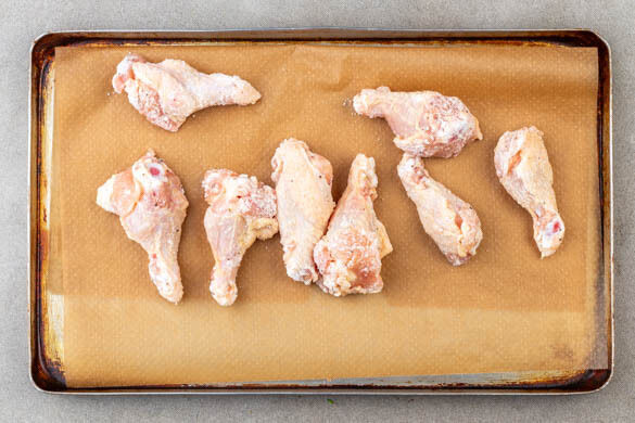 Den Backofen auf 240°C (220°C Umluft) vorheizen. Das Fleisch trocken tupfen und mit 2EL Olivenöl, je ½TL Salz und Pfeffer, 1 kräftigen Prise Zucker und 2EL Mehl einreiben. Das Fleisch auf einem mit Backpapier ausgelegten Backblech verteilen und im oberen Drittel des Ofens in 35–40Min. knusprig und gar backen.
