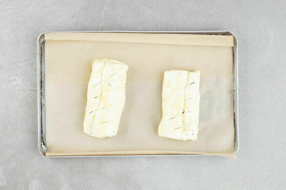 Die Teigpäckchen mit dem Backpapier auf ein oder zwei Backbleche geben und ca. viermal diagonal einschneiden. Die Strudel im Ofen 30–35Min. backen, bis sie goldbraun und knusprig sind. Tipp: Für extra Glanz die Teige vor dem Backen mit Wasser oder verquirltem Ei bestreichen. Nach der Hälfte der Zeit die Position der Bleche tauschen.