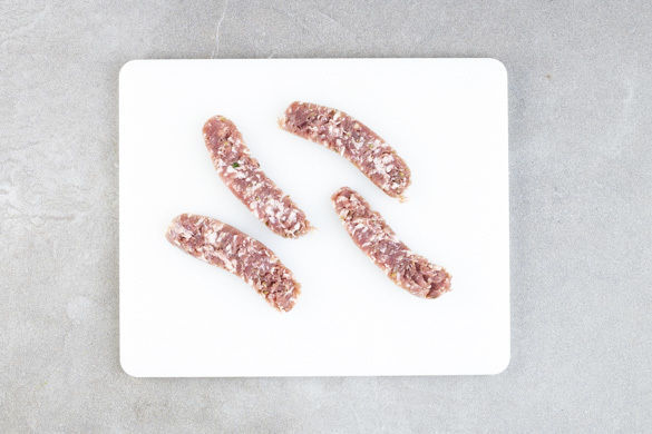 Die Salsiccia längs halbieren. Die Burgerbrötchen nach ca. 20Min. Backzeit der Kartoffeln mit in den Ofen geben und 3–5Min. knusprig aufbacken.