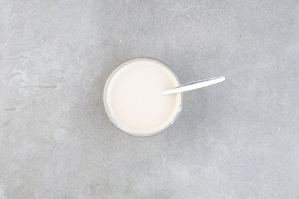 Die Mandarine schälen und die einzelnen Segmente voneinander lösen, dabei so gut es geht die weißen Fäden entfernen. Die Segmente halbieren.