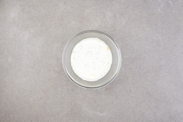 Die Minzeblätter von den Stängeln zupfen und fein schneiden. Den Joghurt mit der Minze und dem restlichen Knoblauch verrühren und mit Salz und Pfeffer abschmecken.