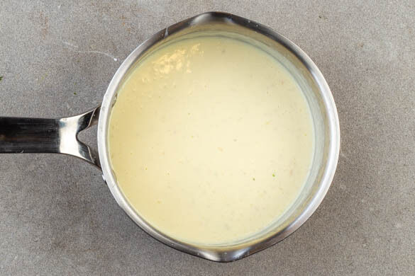 2EL Butter in einem kleinen Topf bei mittlerer Hitze schmelzen und die Schalotten in der Butter ca. 2Min. sanft anbraten. 2EL Mehl unterrühren, dann langsam 600ml Milch mit einem Schneebesen klümpchenfrei einrühren. Das Brühgewürz und 2TL Senf zugeben und die Sauce unter ständigem Rühren 3–5Min. sämig einkochen. Vom Herd nehmen und den Hartkäse unterrühren.