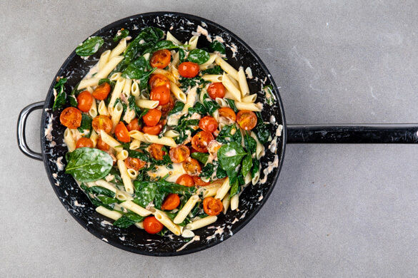 Wenn es mal schnell gehen muss, dann sind diese Nudeln genau das Richtige für dich! Eine einfache wie leckere Sauce mit geräuchertem Lachs, frischem Spinat und fruchtigen Kirschtomaten – das macht satt und glücklich! Manchmal geht eben nichts über Pasta!