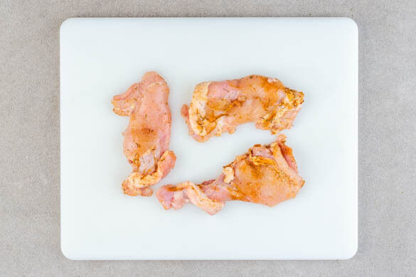 Das Fleisch zum Kürbis auf das Backblech geben. Den Kürbis und das Fleisch 18–22Min. im Ofen backen, bis der Kürbis weich und das Fleisch leicht knusprig und durchgegart ist. Die Garzeit kann je nach Dicke des Fleisches variieren.