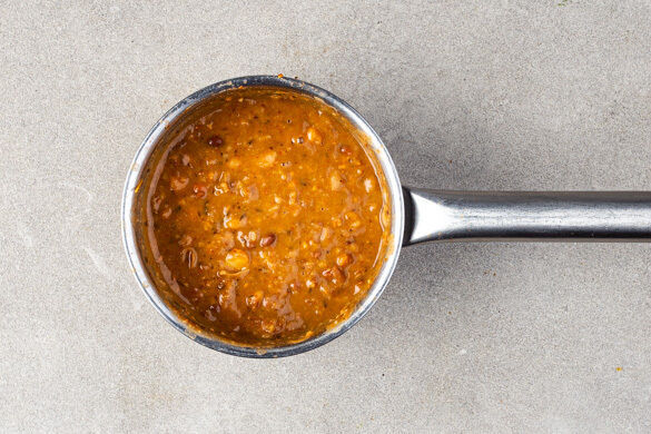Die Bohnen samt Flüssigkeit mit der Gewürzmischung in einem mittelgroßen Topf bei mittlerer Hitze zum Kochen bringen. Dann bei niedriger Hitze 8–10Min. einköcheln lassen, bis etwa die Hälfte der Flüssigkeit verdampft ist, dabei gelegentlich umrühren. Die Bohnen im Topf grob zerdrücken und mit Salz und Pfeffer abschmecken.