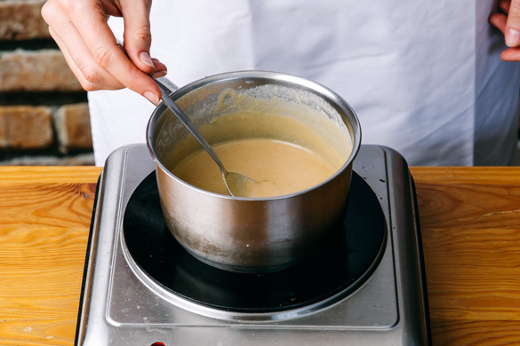 Die Limettenschale abreiben, dann die Limette halbieren und auspressen. Die restliche Kokosmilch mit der Erdnussbutter, der Limettenschale, dem Limettensaft, der Sojasauce und 50–80ml Wasser verrühren und in einem kleinen Topf bei niedriger Hitze 5–6Min. köcheln lassen, bis die Sauce eindickt.