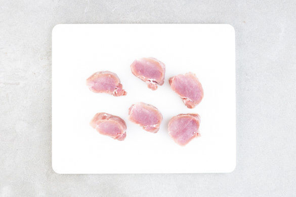 Das Fleisch mit etwas Küchenkrepp trocken tupfen, evtl. vorhandenen Sehnen entfernen und das Fleisch in 6 gleich dicke Scheiben schneiden.
