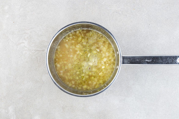Die Zwiebel schälen, halbieren und in feine Würfel schneiden. Den Knoblauch schälen und ebenfalls fein würfeln.