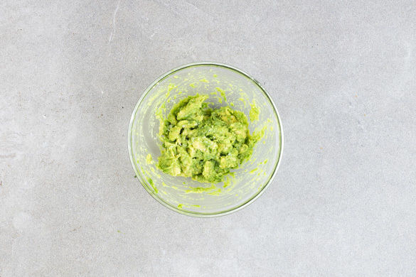 Die Limette halbieren und eine Hälfte auspressen, die andere Hälfte in Spalten schneiden. Die Guacamole mit 1–2TL Limettensaft sowie je 1 Prise Salz und Pfeffer abschmecken.