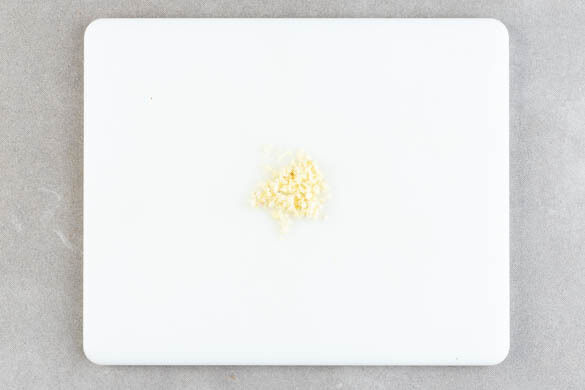Inzwischen den Knoblauch schälen und grob würfeln.