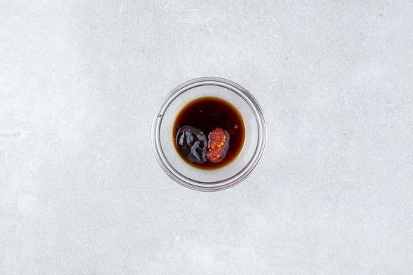 Die Hoisinsauce mit der Sojasauce, der 1/2 des Sambal Oelek und 2–4EL Wasser zu einer Würzsauce verrühren. Tipp: Wer es gerne schärfer mag, kann mehr Sambal Oelek verwenden.