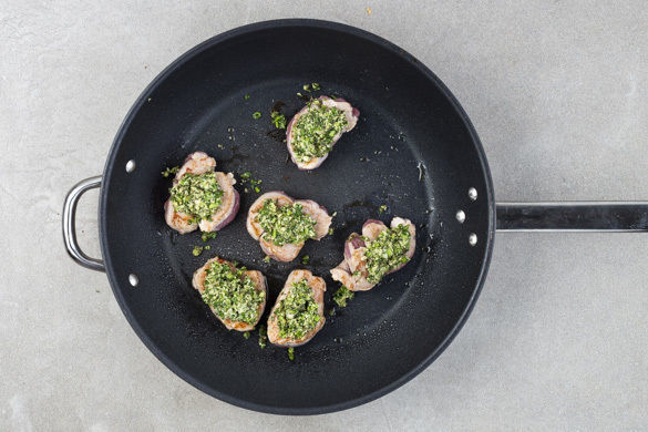 Die Medaillons mit der Panko-Kräuter-Mischung bestreichen, dabei die Panko-Kruste etwas andrücken. Im Ofen 6–8Min. knusprig übergrillen. Tipp: Wer keine ofenfeste Pfanne hat, kann die Medaillons auch in eine Auflaufform geben.