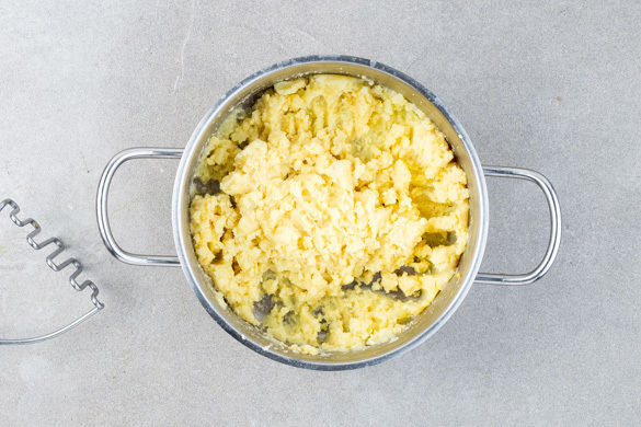 Die Kartoffeln schälen und je nach Größe halbieren oder vierteln. In einem mittelgroßen Topf mit ausreichend gesalzenem Wasser bedecken und zum Kochen bringen, dann ca. 15Min. köcheln lassen, bis die Kartoffeln gar sind. In ein Sieb abgießen, zurück in den Topf geben und abgedeckt warm halten.
