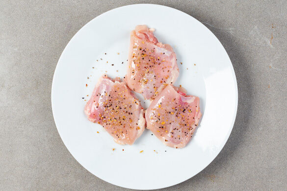 Heute darf mal wieder der Ofen die meiste Arbeit leisten! Unsere kräftig-aromatischen Hähnchenschenkel – hier in der doppelten Portion – werden lecker gewürzt und dann einer Wärmekur unterzogen. Mit auf dem Blech: eine bunte Runde runder bzw. rund gemachter Gemüsesorten. Und nachdem alle gemütlich vor sich hin geschmurgelt haben, treffen sie auf ein cremiges Sößchen mit frischem Schnittlauch. Voilà!