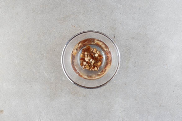 Den Backofen auf 220°C (200°C Umluft) vorheizen. Die Datteln mit 400ml heißem Wasser übergießen und zum Einweichen beiseitestellen.