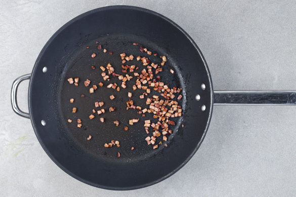 Den Speck in einer großen Pfanne bei mittlerer Hitze ohne Zugabe von Fett 3–5Min. knusprig braten.