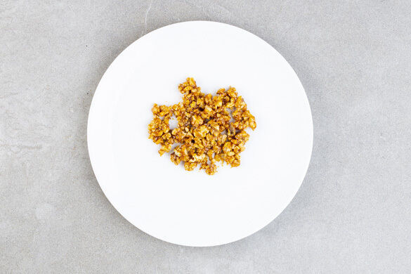Die Stars dieses Rezepts sind nicht nur das gebratene Bio-Hähnchen und der Gemüsereis, sondern auch die karamellisierten Walnüsse. Dafür schmilzt du etwas Zucker in einer Pfanne, bis er sich in eine Art flüssiges Gold verwandelt. Schnell die Nüsse einrühren und abkühlen lassen und du erhältst ein köstliches Topping! Dazu noch eine würzig-süße Sauce und schon bist du der größte Fan dieser chinesisch-amerikanischen Fusion.