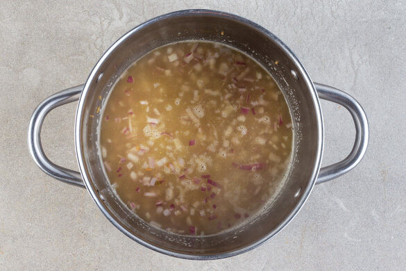 Den Backofen auf 250°C (230°C Umluft) vorheizen. Das Brühgewürz in 600ml heißem Wasser auflösen. Nach Geschmack mit Pfeffer würzen.