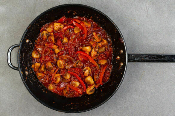 So ein schmackhaftes Ofengericht ist manchmal einfach genau das Richtige. Denn es wärmt ja nicht nur den Körper, sondern auch die Seele! Hier treffen einige unbestrittene Größen der Soulfood-Fraktion aufeinander und lassen etwas wahrlich Heißes entstehen: eine aromatische, mit provenzalischen Kräutern gewürzte Füllung aus Paprika, Pilzen und veganen Hackbällchen in Tomatensauce unter knusprigem Blätterteig! Halleluja!