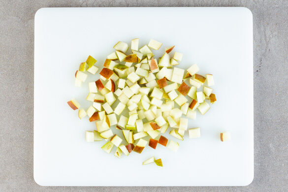 Die Birne vierteln, entkernen und in ca. 1cm kleine Würfel schneiden.