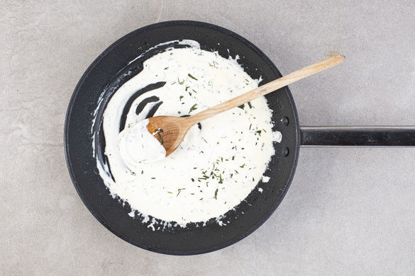 Die hübsch anzuschauenden Hülsenfrüchtchen stecken voller pflanzlicher Proteine und passen ausgezeichnet zum feinen Seehechtfilet, das nur kurz in der Pfanne gebraten wird. Die cremige Sauce hat dank scharfem Meerrettich und frischem Estragon das besondere Etwas und ist richtig lecker. Guten Appetit!
