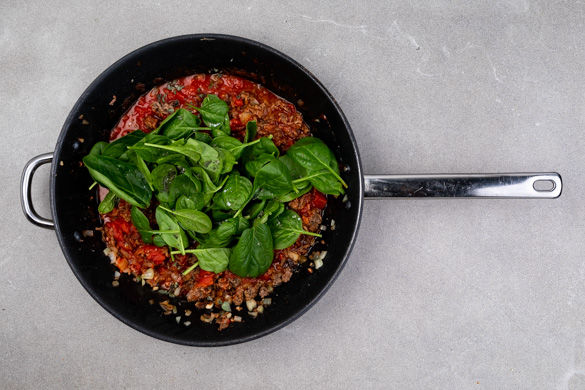 Hast du schon mal eine klassische Sauce bolognese mit Spinat verfeinert? Wenn nicht, können wir dir dieses Gericht wärmstens empfehlen, der Spinat macht sich in dem leckeren Klassiker aus saftigem Rinderhack und fruchtiger Tomate nämlich richtig gut! Jede Wette, dass sogar Kids nicht meckern werden.