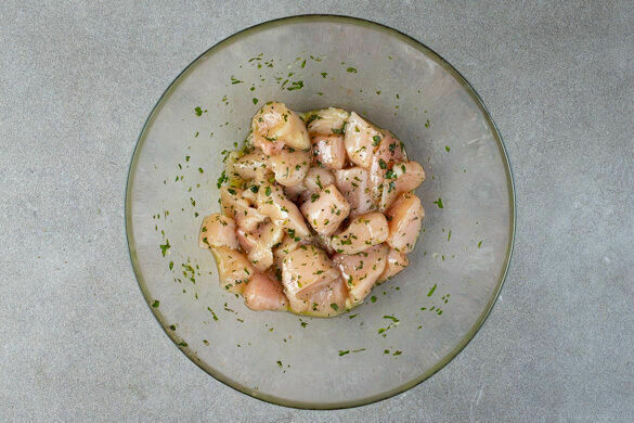 Das Fleisch trocken tupfen und mit dem Oregano-Öl vermengen.